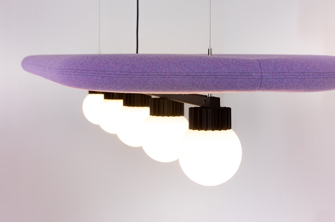 BuzziSurf is a versatile, height-adjustable acoustic lighting solution, perfect for spaces with low ceilings. Available in Small for individual tables and Medium and Large for collaborative zones, it enhances both lighting and sound absorption. With customizable LED options and dimming capabilities, BuzziSurf can be tailored to suit any space, offering playful design flexibility with its various sizes, fabrics, and colors. Its acoustic performance and impeccable craftsmanship make it ideal for dynamic, soft architectural environments.
