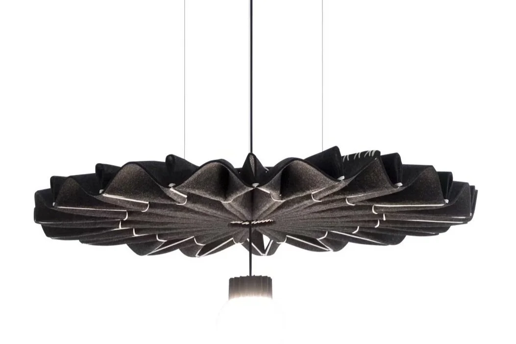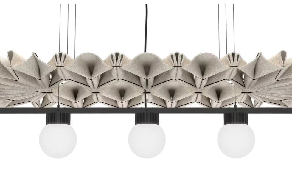 BuzziPleat Light is a sculptural acoustic pendant that beautifully integrates sound absorption and LED lighting. Handcrafted from sustainable BuzziFelt, made from recycled materials, each piece takes over two hours to create. Available in various designs, including the elongated BuzziPleat Edel Long, it offers versatile lighting options and can be customized to enhance any interior. The architectural folds of BuzziPleat Light effectively trap sound, making it an elegant solution for noise management while adding a stylish touch to spaces.