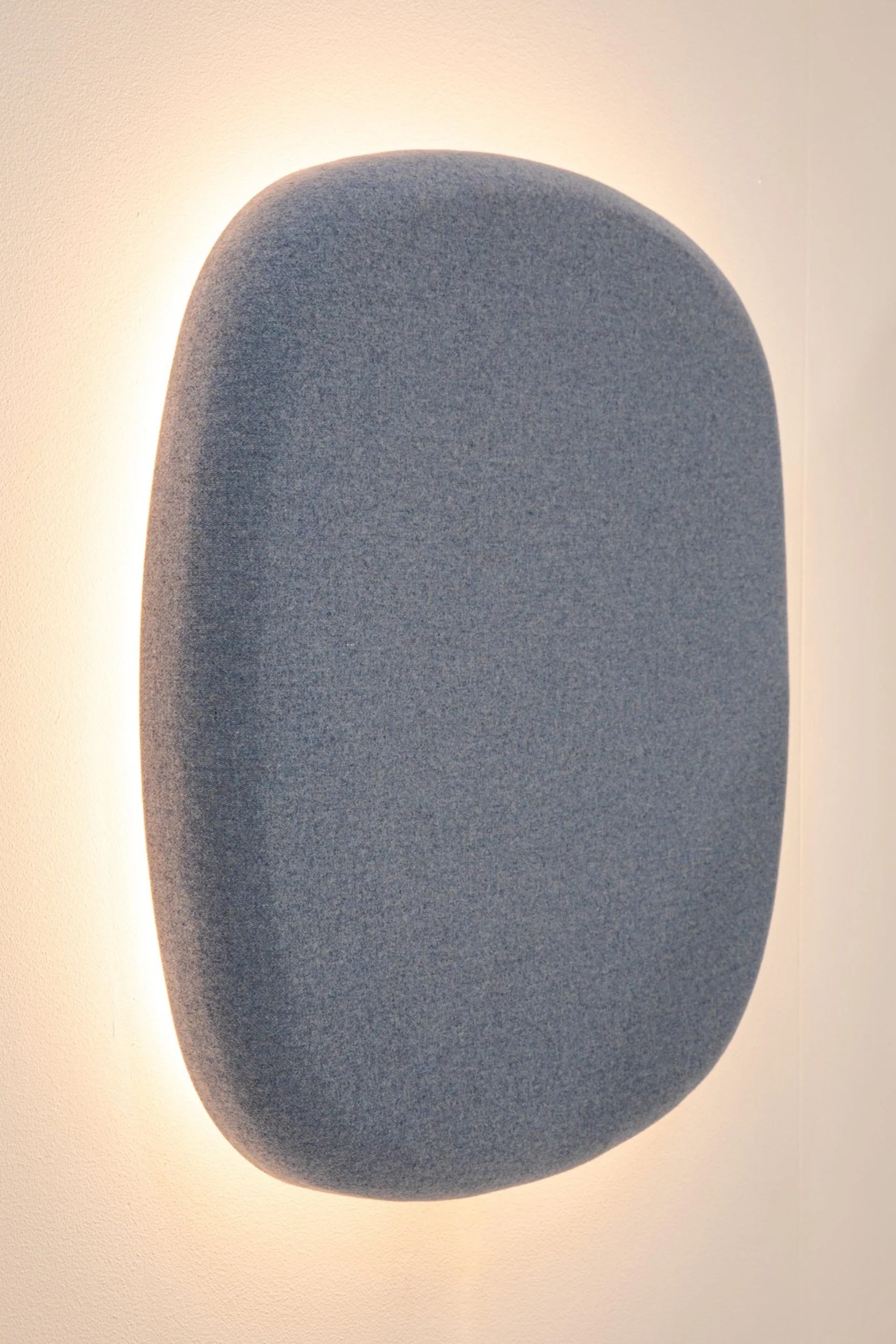 BuzziPebl Light features a thick, upholstered body making it acoustically performant on mid, low, and high frequencies.